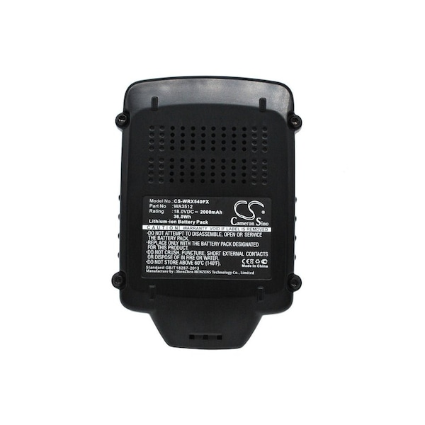 This is a replacement compatible with a Work Power Tool BatteryVolts: 18V 18 VoltsCapacity: 2000mAh 2AhType: Li-ionColor: BlackWork Replacement Batteries.Mfgr Part # WA3551.1 WA3572Dimensions: 4.8 in. L x 3.3 in. W x 1.71 H in.Weight: 1.2 lbWarranty: 1 YearDisclaimer: Our products are not affiliated with or authorized by Work.FAQsWhat is the best replacement battery for the Work WA3551.1 WA3572 2000mAh Power Tool Battery?The CS-WRX540PX.3 is the best replacement battery for the Work WA3551.1 WA3572 2000mAh Power Tool Battery. What is your return policy and battery warranty?Our batteries are backed by easy 30-day returns and a 12-month warranty. How do I find the best replacement Battery?Our search tool at the top of the website should give you the best results. Search by brand or part number to see if we have the right match for you. What does Li-ion and Ni-MH mean?They represent different types of rechargeable batteries. Li-ion stands for Lithium Ion, lithium ions move from the negative electrode through an electrolyte to the positive electrode during discharge and back when charging. Ni-MH stands for nickel-metal hydride where the negative electrode is made from a hydrogen-absorbing alloy. Do you have a wholesale, reseller and large volume purchase program?Yes, our bulk purchasing program saves you money and allow you to obtain the batteries you need in one easy, hassle-free transaction. Apply here.
