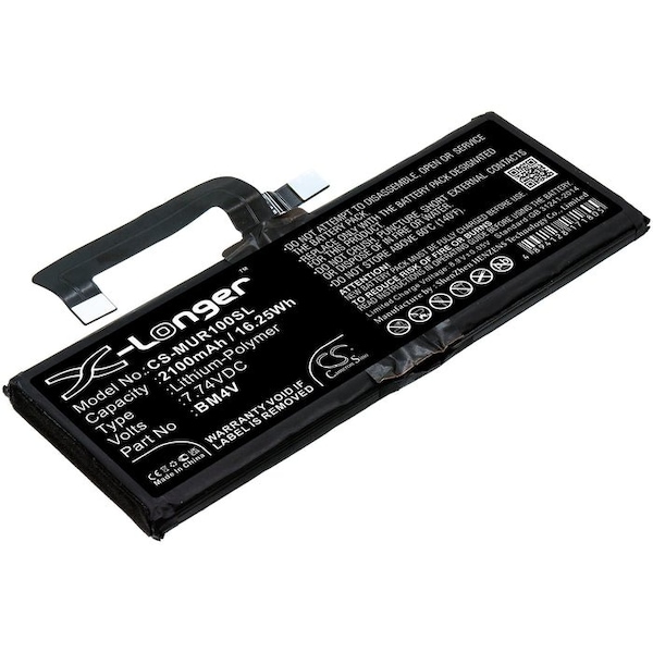 This is a replacement compatible with a Xiaomi Mobile Phone BatteryVolts: 7.74V 7.74 VoltsCapacity: 2100mAh 2.1AhType: Li-PolymerXiaomi M2007J1SC Mi 10 Ultra Replacement Batteries.Mfgr Part # BM4VDimensions: 4.26 in. L x 1.62 in. W x 0.28 H in.Weight: 0.3 lbWarranty: 1 YearDisclaimer: Our products are not affiliated with or authorized by Xiaomi.FAQsWhat is the best replacement battery for the Xiaomi M2007J1SC Mi 10 Ultra Mobile Phone Battery?The CS-MUR100SL is the best replacement battery for the Xiaomi M2007J1SC Mi 10 Ultra Mobile Phone Battery. What is your return policy and battery warranty?Our batteries are backed by easy 30-day returns and a 12-month warranty. How do I find the best replacement Battery?Our search tool at the top of the website should give you the best results. Search by brand or part number to see if we have the right match for you. What does Li-ion and Ni-MH mean?They represent different types of rechargeable batteries. Li-ion stands for Lithium Ion, lithium ions move from the negative electrode through an electrolyte to the positive electrode during discharge and back when charging. Ni-MH stands for nickel-metal hydride where the negative electrode is made from a hydrogen-absorbing alloy. Do you have a wholesale, reseller and large volume purchase program?Yes, our bulk purchasing program saves you money and allow you to obtain the batteries you need in one easy, hassle-free transaction. Apply here.