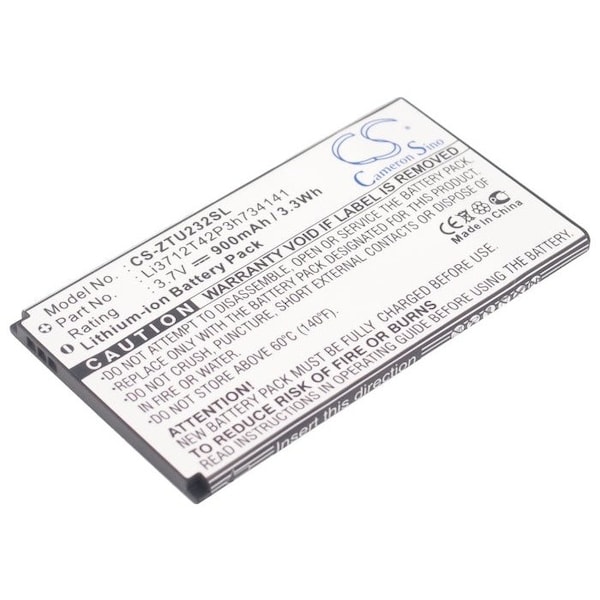 This is a replacement compatible with a ZTE Mobile Phone BatteryVolts: 3.7V 3.7 VoltsCapacity: 900mAh 0.9AhType: Li-ionColor: BlackZTE N960 U236 X920 Replacement Batteries.Mfgr Part # Li3712T42P3h734141Dimensions: 2.87 in. L x 1.61 in. W x 0.17 H in.Weight: 0.1 lbWarranty: 1 YearDisclaimer: Our products are not affiliated with or authorized by ZTE.FAQsWhat is the best replacement battery for the ZTE N960 U236 X920 Mobile Phone Battery?The CS-ZTU232SL is the best replacement battery for the ZTE N960 U236 X920 Mobile Phone Battery. What is your return policy and battery warranty?Our batteries are backed by easy 30-day returns and a 12-month warranty. How do I find the best replacement Battery?Our search tool at the top of the website should give you the best results. Search by brand or part number to see if we have the right match for you. What does Li-ion and Ni-MH mean?They represent different types of rechargeable batteries. Li-ion stands for Lithium Ion, lithium ions move from the negative electrode through an electrolyte to the positive electrode during discharge and back when charging. Ni-MH stands for nickel-metal hydride where the negative electrode is made from a hydrogen-absorbing alloy. Do you have a wholesale, reseller and large volume purchase program?Yes, our bulk purchasing program saves you money and allow you to obtain the batteries you need in one easy, hassle-free transaction. Apply here.