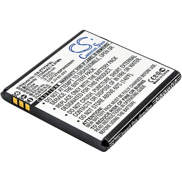 This is a replacement compatible with a ZTE Mobile Phone BatteryVolts: 3.7V 3.7 VoltsCapacity: 1100mAh 1.1AhType: Li-ionColor: BlackZTE V797 Replacement Batteries.Mfgr Part # Li3712T42P3H525051Dimensions: 2.04 in. L x 1.97 in. W x 0.2 H in.Weight: 0.1 lbWarranty: 1 YearDisclaimer: Our products are not affiliated with or authorized by ZTE.FAQsWhat is the best replacement battery for the ZTE V797 Mobile Phone Battery?The CS-ZTV797SL is the best replacement battery for the ZTE V797 Mobile Phone Battery. What is your return policy and battery warranty?Our batteries are backed by easy 30-day returns and a 12-month warranty. How do I find the best replacement Battery?Our search tool at the top of the website should give you the best results. Search by brand or part number to see if we have the right match for you. What does Li-ion and Ni-MH mean?They represent different types of rechargeable batteries. Li-ion stands for Lithium Ion, lithium ions move from the negative electrode through an electrolyte to the positive electrode during discharge and back when charging. Ni-MH stands for nickel-metal hydride where the negative electrode is made from a hydrogen-absorbing alloy. Do you have a wholesale, reseller and large volume purchase program?Yes, our bulk purchasing program saves you money and allow you to obtain the batteries you need in one easy, hassle-free transaction. Apply here.