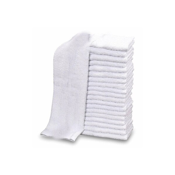 - Pack of 24 14" x 17" white cotton towels.