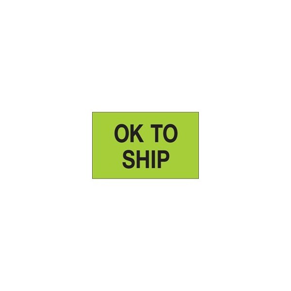 1 1/4 x 2'' - ''OK To Ship'' Fluorescent Green Labels