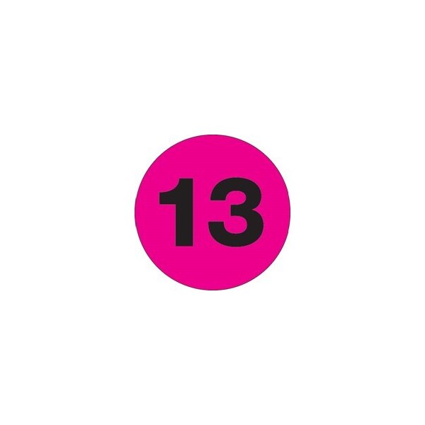 1'' Circle - ''13'' Fluorescent Pink Number Labels