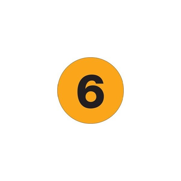 1'' Circle - ''6'' Fluorescent Orange Number Labels
