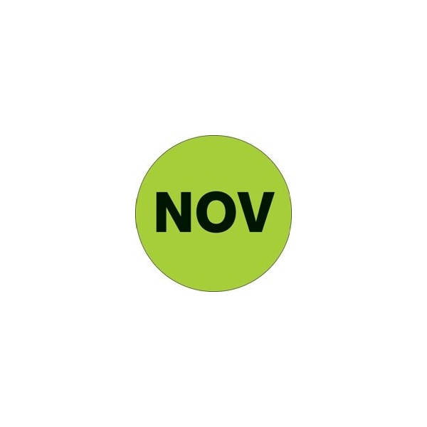 1'' Circle - ''NOV'' Fluorescent Green Months of the Year Labels