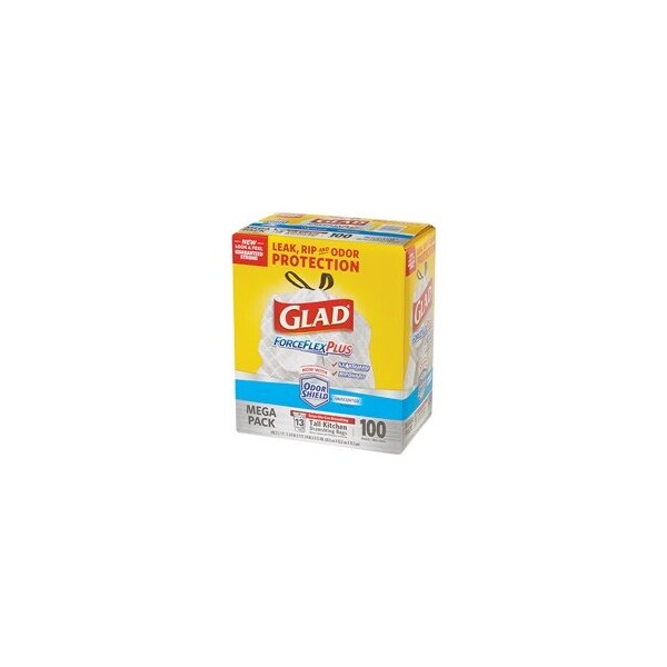100-Glad ForceFlex Trash Bags - 13 Gallon, White, 100PK