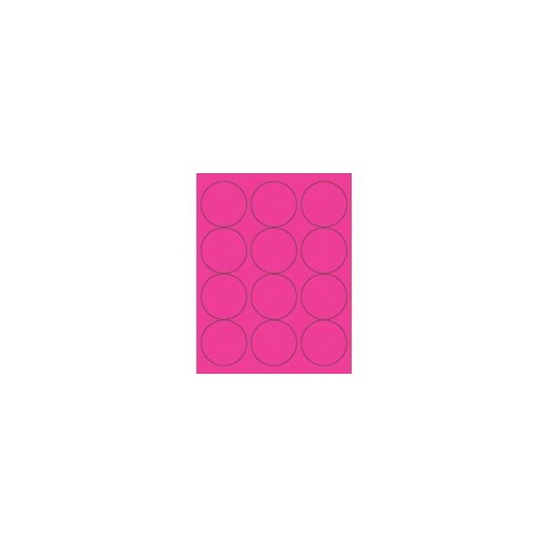2 1/2'' Fluorescent Red Circle Laser Labels-12 Labels per Sheet