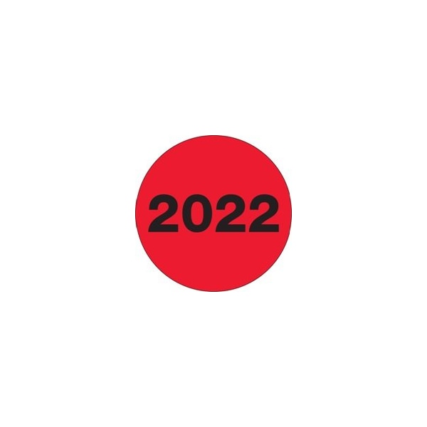 2'' Circle - ''2022'' Fluorescent Red Year Labels