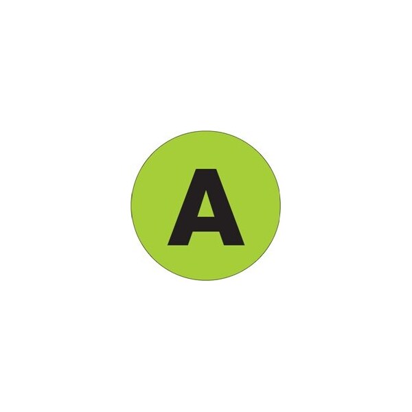 2'' Circle - ''A'' Fluorescent Green Letter Labels