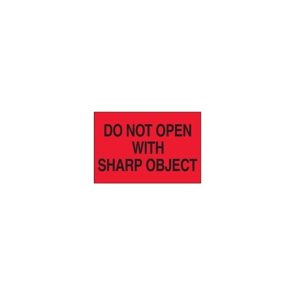 2 x 3'' - ''Do Not Open with Sharp Object'' Fluorescent Red Labels