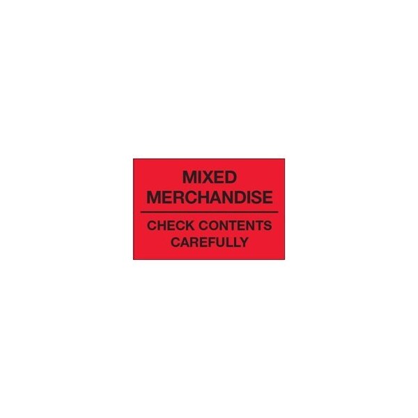 2 x 3'' - ''Mixed Merchandise - Check Contents Carefully'' Fluorescent Red Labels