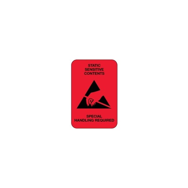 2 x 3'' - ''Static Sensitive Contents'' Fluorescent Red Labels