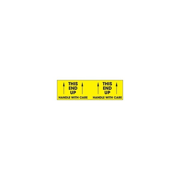 3 x 10'' - ''This End Up - Handle With Care'' Fluorescent Yellow Labels