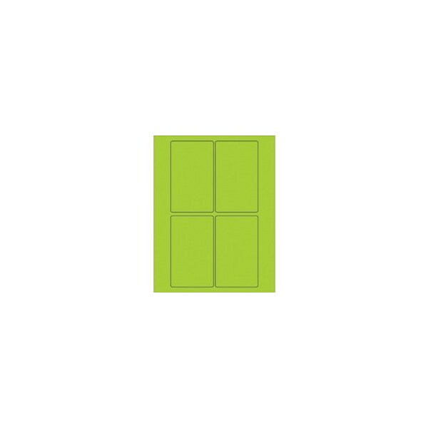 3 x 5'' Fluorescent Green Rectangle Laser Labels-4 Labels per Sheet