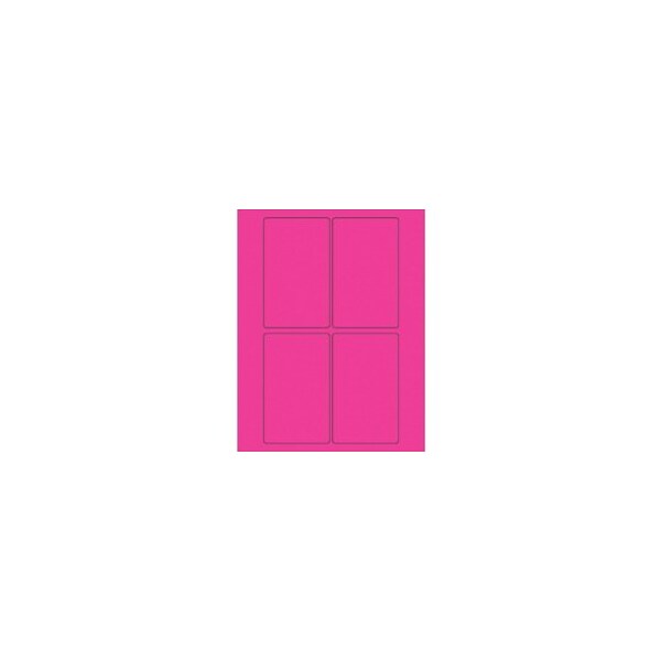 3 x 5'' Fluorescent Pink Rectangle Laser Labels-4 Labels per Sheet