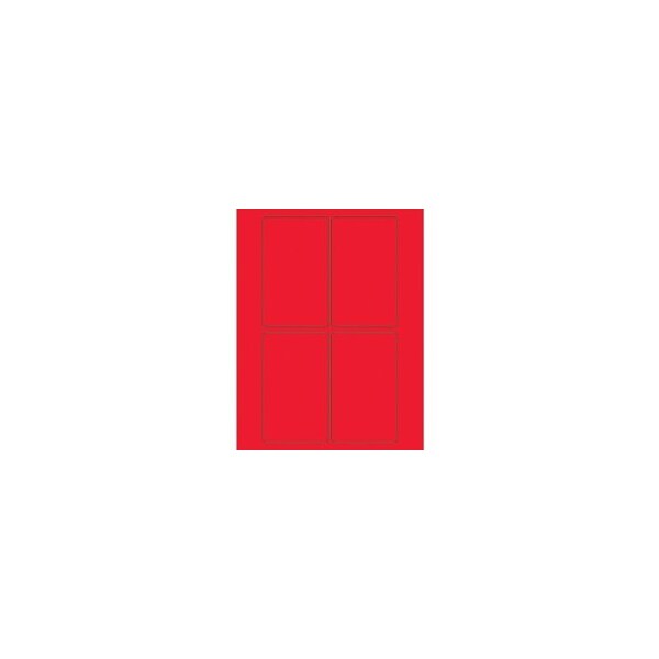 3 x 5'' Fluorescent Red Rectangle Laser Labels-4 Labels per Sheet
