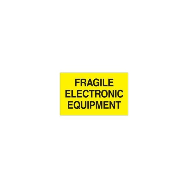 3 x 5'' - ''Fragile Electronic Equipment'' Fluorescent Yellow Labels
