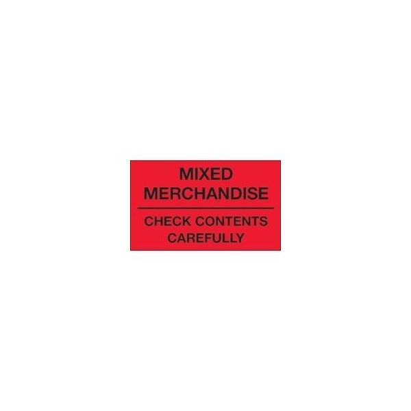 3 x 5'' - ''Mixed Merchandise - Check Contents Carefully'' Fluorescent Red Labels