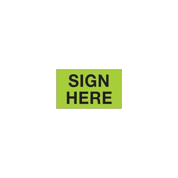 3 x 5'' - ''Sign Here'' Fluorescent Green Labels
