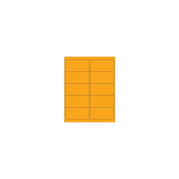 4 x 2'' Fluorescent Orange Removable Rectangle Laser Labels-10 Labels per Sheet