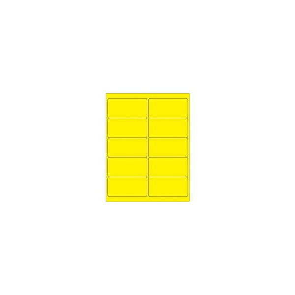 4 x 2'' Fluorescent Yellow Rectangle Laser Labels-10 Labels per Sheet