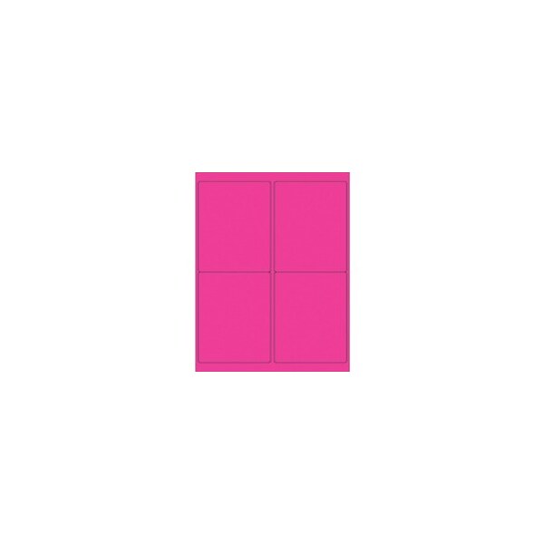 4 x 5'' Fluorescent Pink Rectangle Laser Labels-4 Labels per Sheet