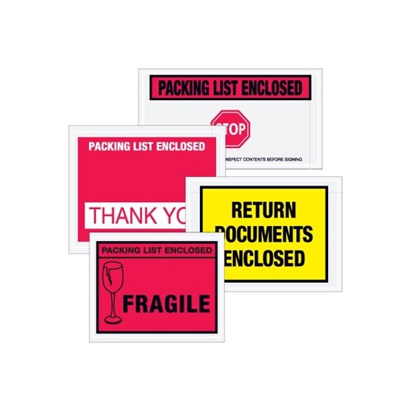5 1/2 x 10'' Red ''Packing List Enclosed'' Envelopes, 1000PK