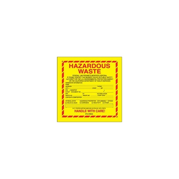6 x 6'' - ''Hazardous Waste - California'' Labels