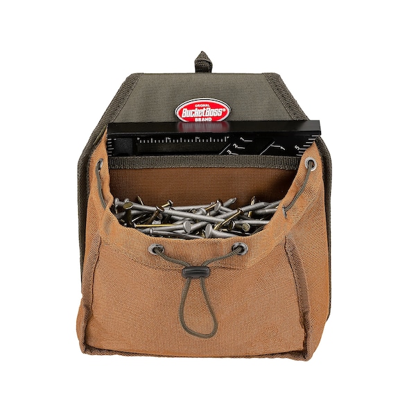 Part of the exclusive FlapFitTM Series, the Parachute Pouch with Speed Square features a single expandable pouch which can be secured by a drawstring shock cord. There is a single sleeve for a speed square. The Bucket Boss FlapFitTM Series is designed with a hook and loop flap to fit over a belt or tuck into a pocket.