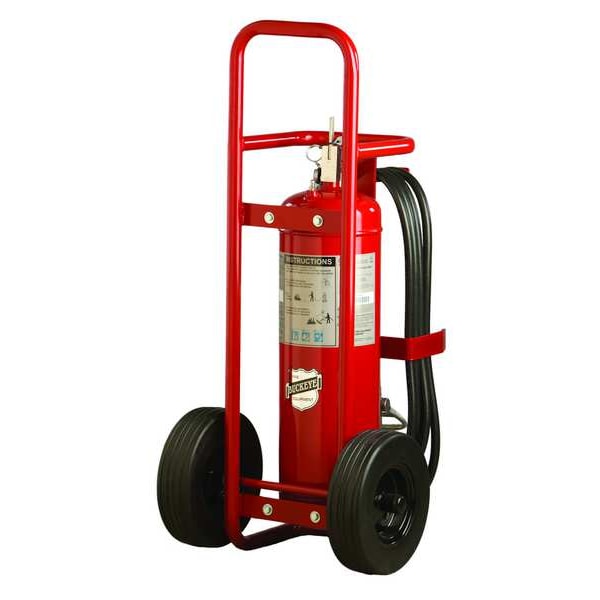 Wheeled Fire Extinguisher, Charging Rechargeable, Cylinder Color Red, Cylinder Diameter 9 in, Cylinder Height 47 in, Cylinder Material Steel, Discharge Time 36 sec, Extinguisher Capacity 50 lb, Extinguisher Class ABC, Extinguishing Agent Material Composition Monoammonium Phosphate, Extinguishing Agent Type Dry Chemical, Features Designed for One-Man Operation, Tow Loops Can Be Added for Vehicle Transport Capability, Transportable Through Doorways and Over Rough Terrain
