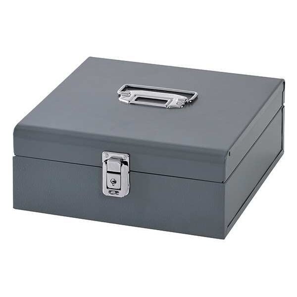Cash Box, Number of Compartments 7, Material Steel, Lock Style Hasp Lock, Color Gray, Height 4 in, Width 10 in, Depth 9 3/4 in, Includes Cash Tray