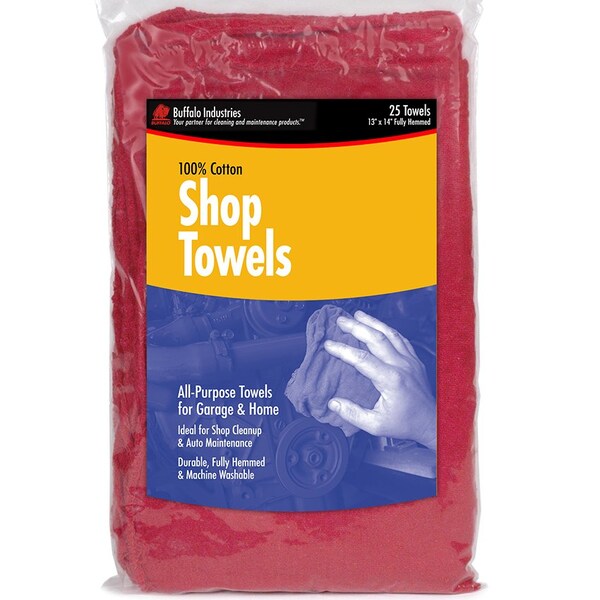 Excellent grease and oil rag for use around the auto, garage, and home. Washed, dyed, and dried to ensure a quality product. Machine washable. 100% cotton. 14 in. x 14 in. fully hemmed.