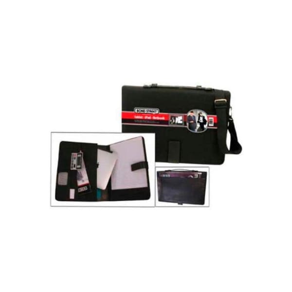 ideal for men or women: hand carry, slide into your briefcase, or wear cross shoulder with removable shoulder strap and handle on spine. behind left organizer is a 2-section divided pocket to secure a binder, file folder and a tablet, ipad or netbook up to 14" x 9.25". Full width back open pocket (can be embossed). Unique small case fits letter or legal size writing pad. the soft smooth features of 600 denier poly, with leather-look accents. available in black or charcoal color.