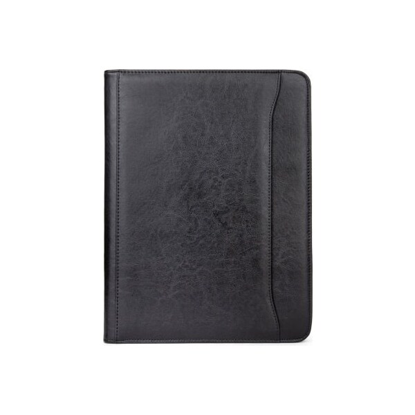 Features: made of vegan leather quick access front zippered pocket zip around closure pen loop letter size notepad is included document section zippered pocket