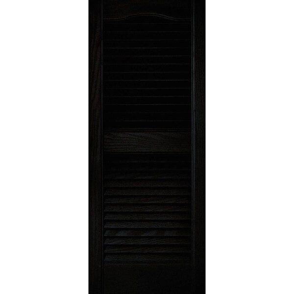 All shutters open louvered cathedral top with center rail and 15 wide. Durable maintenance-free copolymer construction with molded-through color. No paint to ever scratch or flake. Designed with a deep wood grain texture for the appearance of wood shutters without the maintenance worries of wood. Installation fast and easy in any material: Wood aluminum vinyl stucco hardboard or brick. Clean with mild detergent then hose off. Requires a drill with 1/4 masonry bit. 8 Shutter-Lok fasteners included for installation. These shutters cannot be painted. Limited