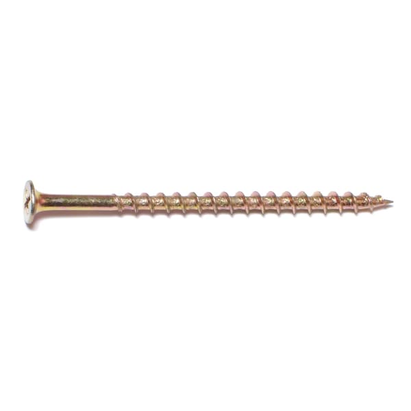 3 in, Phillips Drive, Flat Head Wood Screw, Zinc Yellow Steel