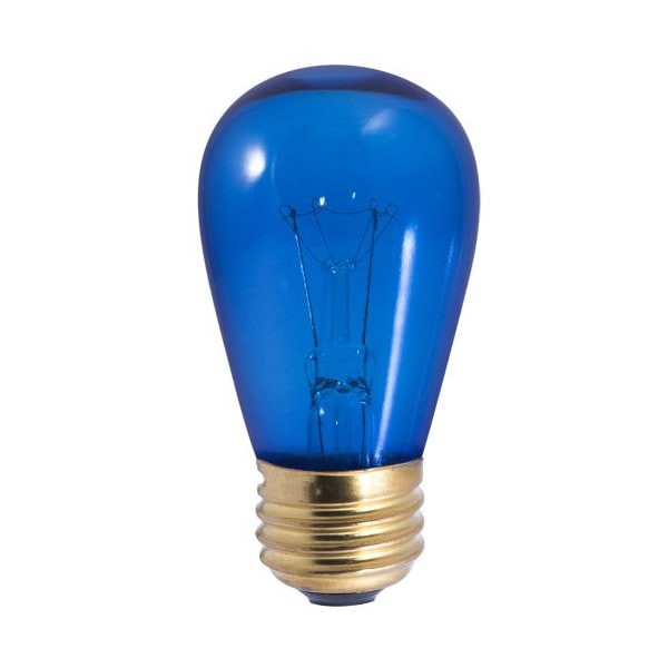 This 11W E26 Dimmable Incandescent Transparent Blue Light Bulb makes changing the look of your outdoor space quick and easy. Ideal for string light replacement, amusement or theatrical lighting.