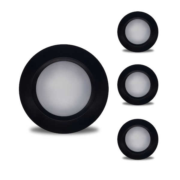 14WLED 7 ROUND DISC LIGHT 3000K BLACK ALUMINUM, PIGTAIL, 4PK