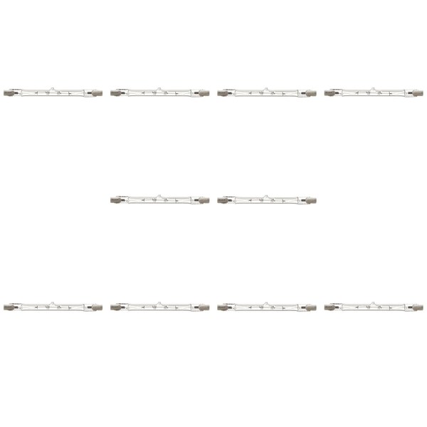 Bulbrite helps you see, do, engage and experience every moment as it's meant to be. Bulbrite is here to inspire you to Turn Life On in a way that only the right, beautiful light can do. Included in this package are 10 individual T3 halogen bulbs. Each bulb has a double ended RSC base. These bulbs are fully dimmable, meaning they will work with your home's existing dimmer switches and technology. These tubular bulbs have a C-8 filament type housed within the bulb itself. Halogen bulbs are known to emit harmful UVA and UVB rays. These long bulbs have a full UV stop, meaning you won't have to worry about the effects of UV light when in use. This is a pack of 10 bulbs.