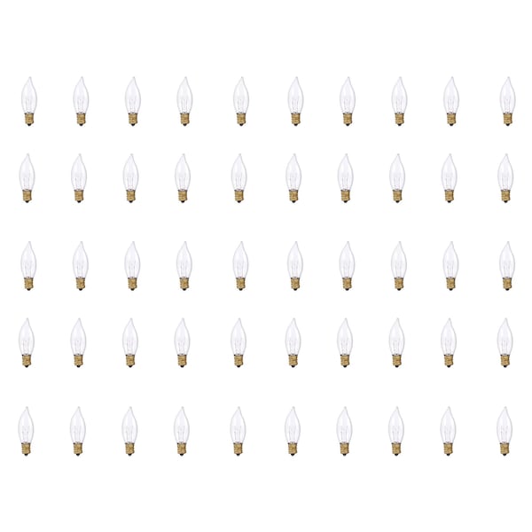 25W Dimmable Clear CA8 Incandescent Light Bulbs, Candelabra E12 Base, 2700K, 50PK