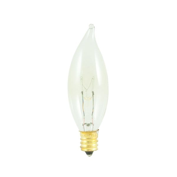 The Bulbrite 25 Watt Dimmable Clear CA8 Flame Tip Incandescent Light Bulb features a Candelabra (E12) Base and is designed to imitate the shape of a flame for a classic look. It is smaller diameter making it ideal for mini chandeliers. This bulb is also perfect for decorative lighting in homes and commercial areas alike.