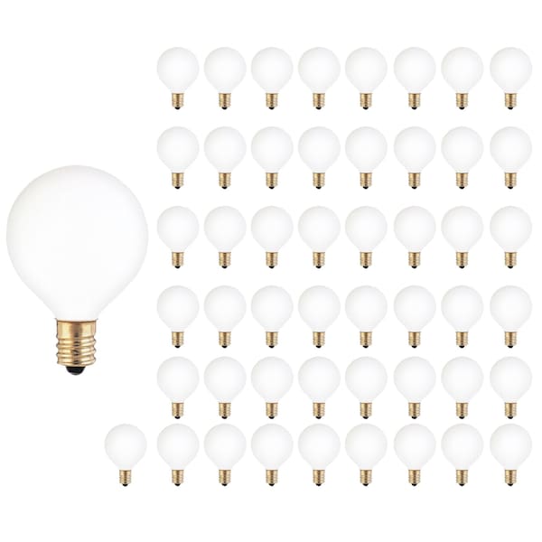 The Bulbrite 25 Watt Dimmable White Globe G12 Incandescent Light Bulb features a Candelabra (E12) Base, and is ideal for decorative lighting in amusement parks. This bulb is also perfect for applications in signs and displays, as well as in residential spaces as a decorative feature, both indoors and outdoors alike.