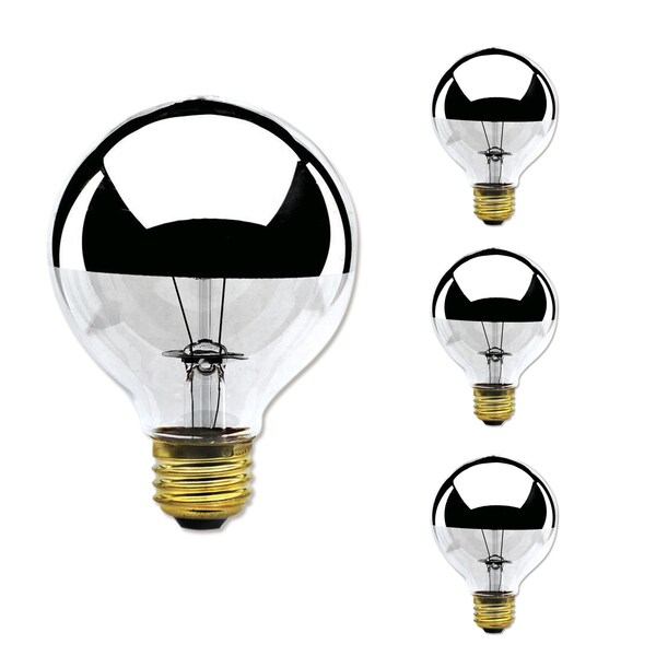 40W Dimmable Half Chrome G25 Incandescent Light Bulbs, Medium E26 Base, 2700K, 6PK