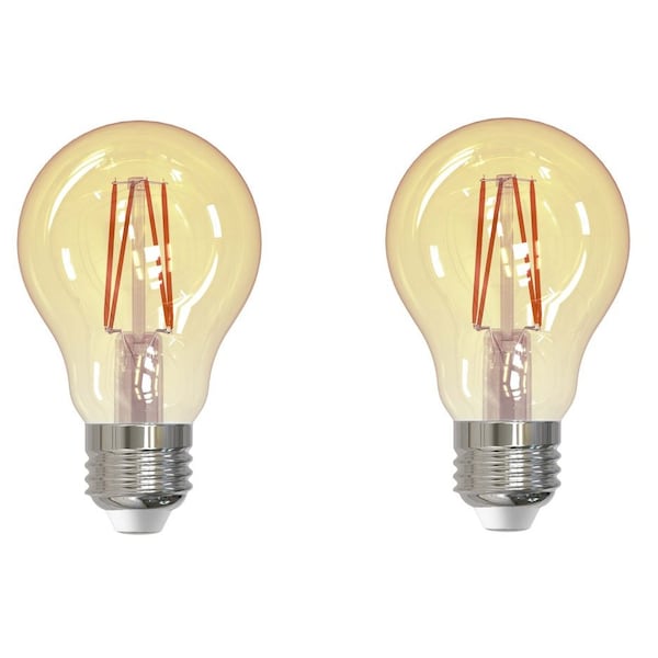 40W Equivalent Amber Light A19 Dimmable LED Filament Light Bulb, 2PK