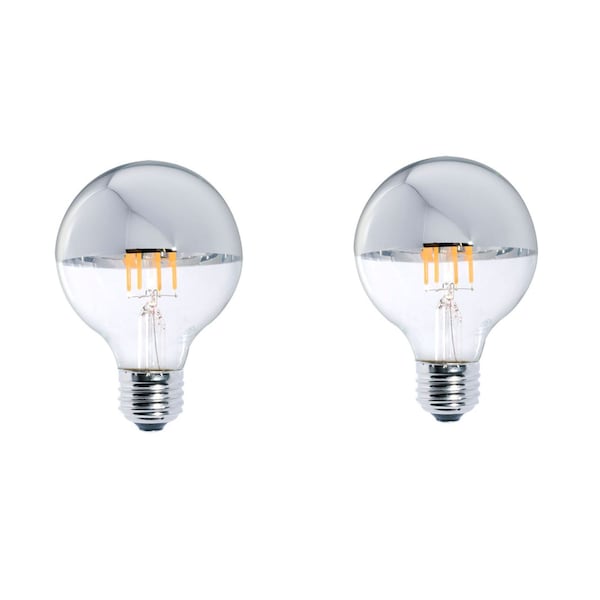 40W Equivalent Warm White Light G25 Dimmable LED Half Chrome Light Bulb, 2PK