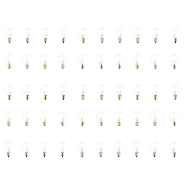 Bulbrite helps you see, do, engage and experience every moment as it's meant to be. Bulbrite is here to inspire you to Turn Life On. Included in this purchase are 50 individual G12 Globe Incandescent light bulbs with Candelabra Screw E12 base. Each bulb is 40W. These bulbs are 130 volts and rated at 2700K.