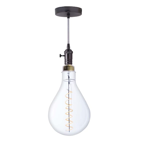 - SPECIFICATIONS: Included in this kit is one gunmetal finish pendant with a medium screw socket and one 13" pear shaped LED dimmable bulb, with 4 watts of power, emitting a soft amber glow in a clear glass and medium screw base.