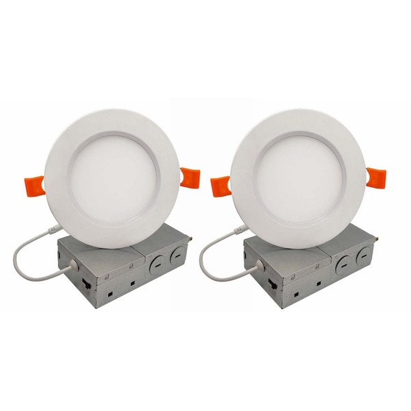 6" Canless 3000K, 75w Equivalent, New Construction Integrated LED Recessed Light Kit Metal JBOX, 2PK
