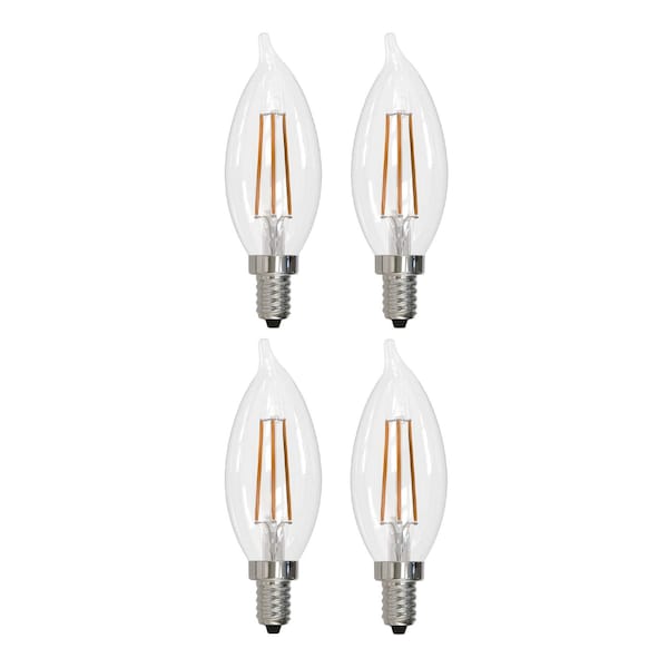 60w CA10 Clear Dimmable Edison Style Filament LED Light Bulb (E12) Candelabra Screw Base, 3000K, 4PK