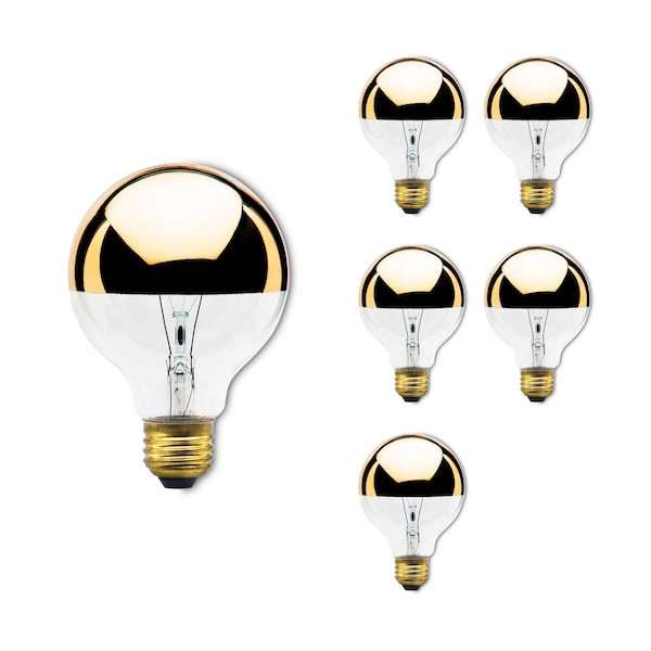 Incandescent Dimmable 40 Watt Half Gold Globe G25 Light Bulbs with E26 Screw Base, 6 PK